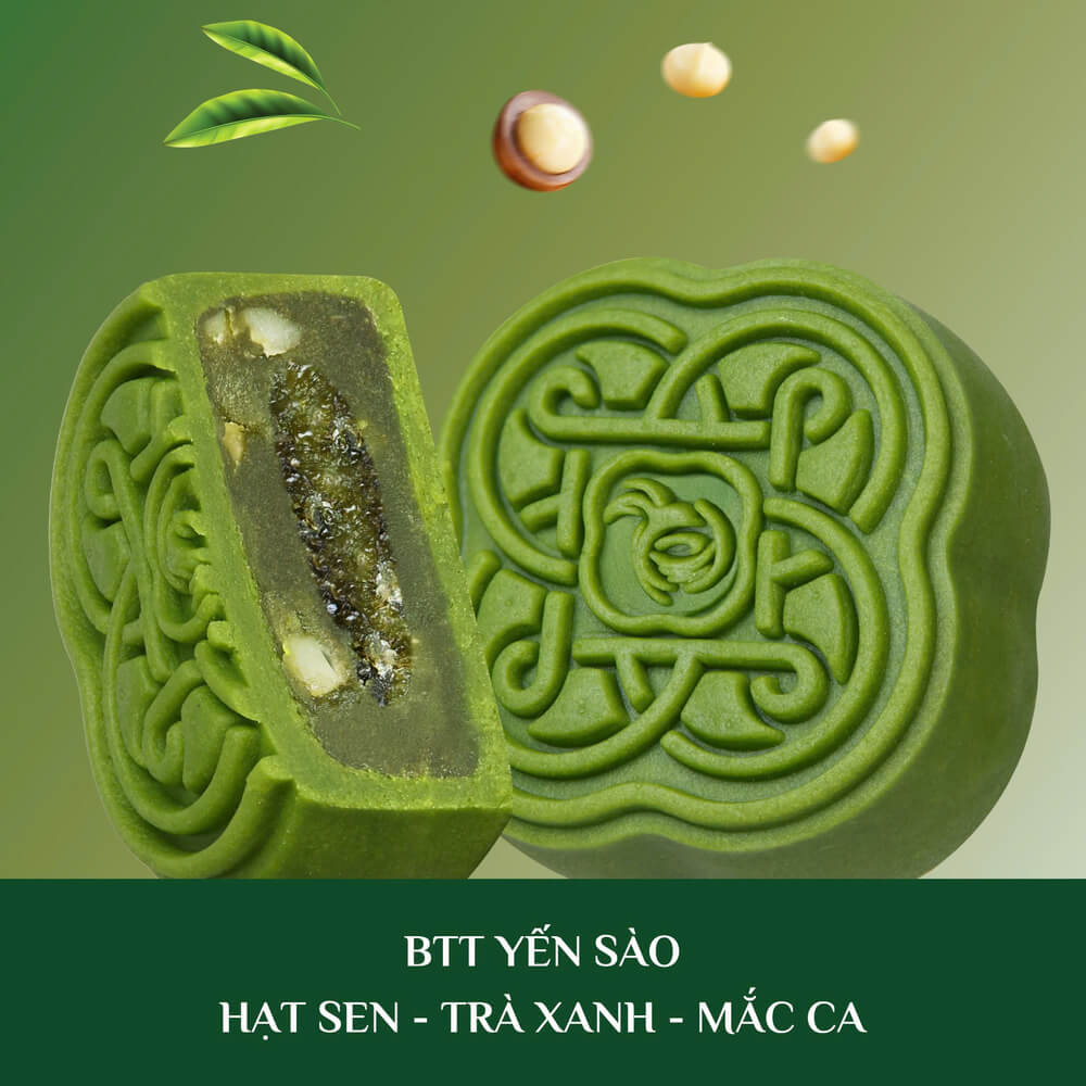 - Tên sản phẩm: Bánh Trung Thu Yến Sào Hạt Sen – Trà Xanh – Mắc Ca