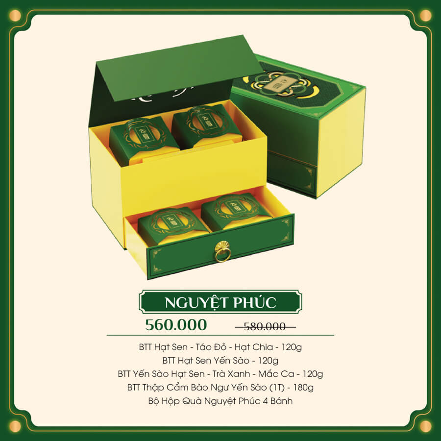 Với sứ mệnh “Gói trọn yêu thương trong từng mùa trăng”, Bửu Yến không ngừng đổi mới thiết kế, lựa chọn nguyên liệu tinh tuyển và cải tiến công thức để phù hợp với khẩu vị đa dạng ngày nay. Hộp quà Nguyệt Phúc là kết tinh của mỹ cảm thưởng quà hiện đại – truyền thống – sức khỏe – thẩm mỹ.