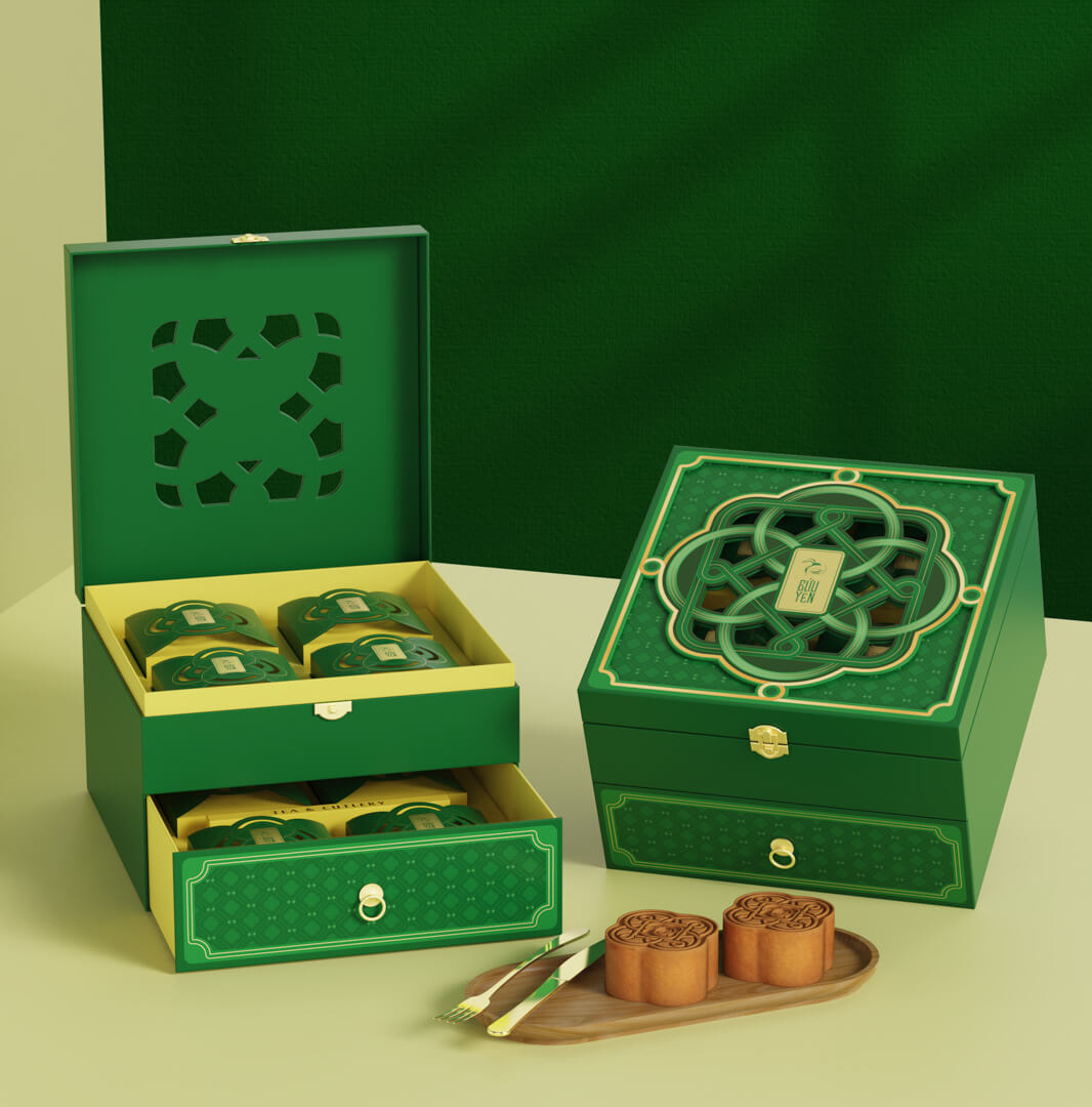Thượng Phúc 07 sở hữu thiết kế 2 tầng ngăn kéo và nắp mở, tượng trưng cho sự viên mãn nhân đôi. Mỗi tầng bánh là một lớp ý nghĩa, vừa gợi nhớ khoảnh khắc sum vầy, vừa nâng niu giá trị của từng chiếc bánh được đặt trong đó.