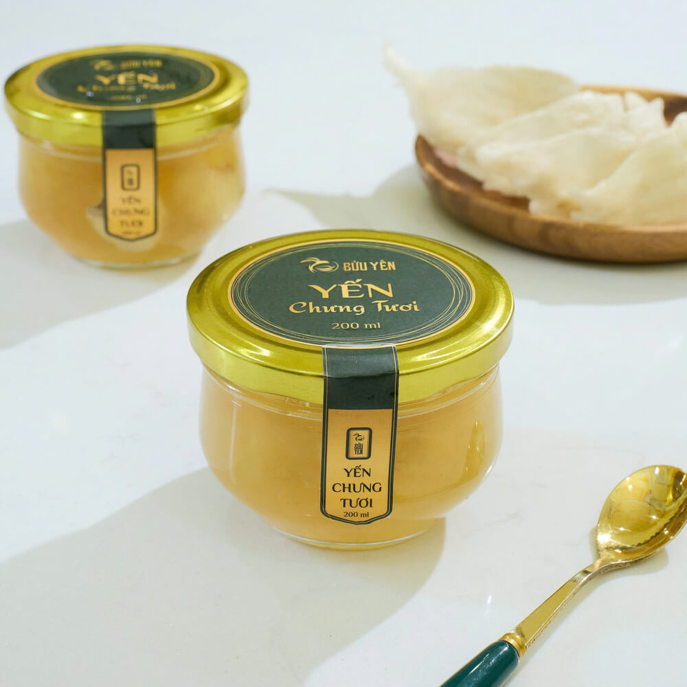 - Chưng mới theo đơn đặt hàng: Đặt tới đâu chưng tới đó, đảm bảo yến tươi – không để qua ngày.